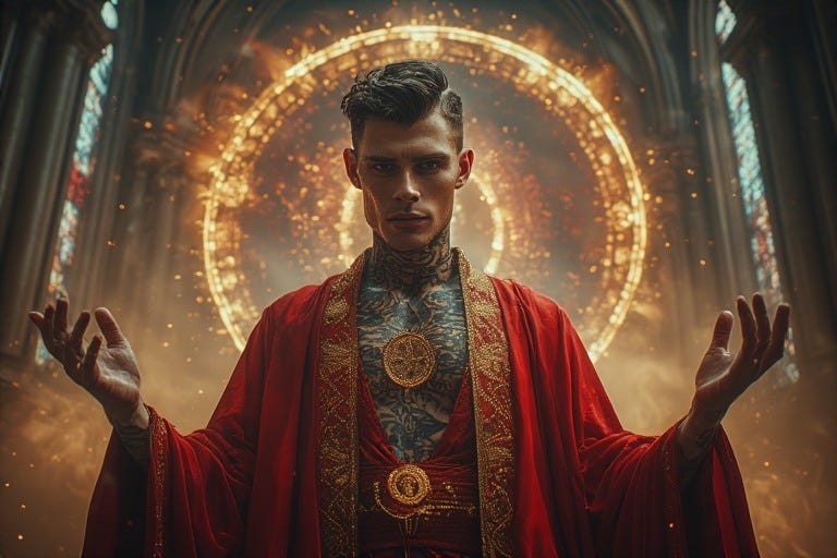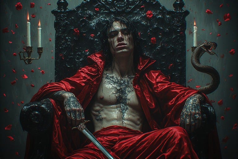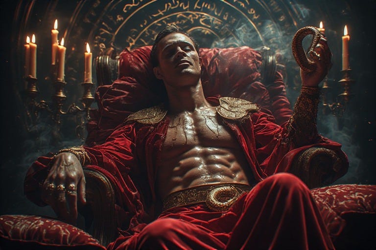 Having endured the excruciating descent into shadow during Nigredo, emerged purified through Albedo’s lunar stillness, and awakened to his authentic voice in Citrinitas’s golden dawn, the queer man now stands at the threshold of his birthright. Before him lies what generations of heteropatriarchal structures have labeled dangerous, what religious doctrines have deemed sinful, what medical institutions have pathologized as disorder: his own sovereign power.