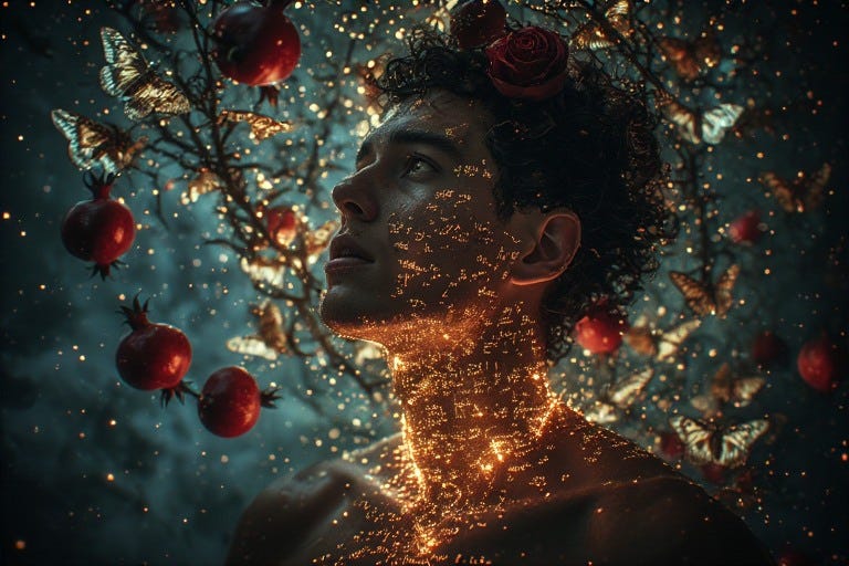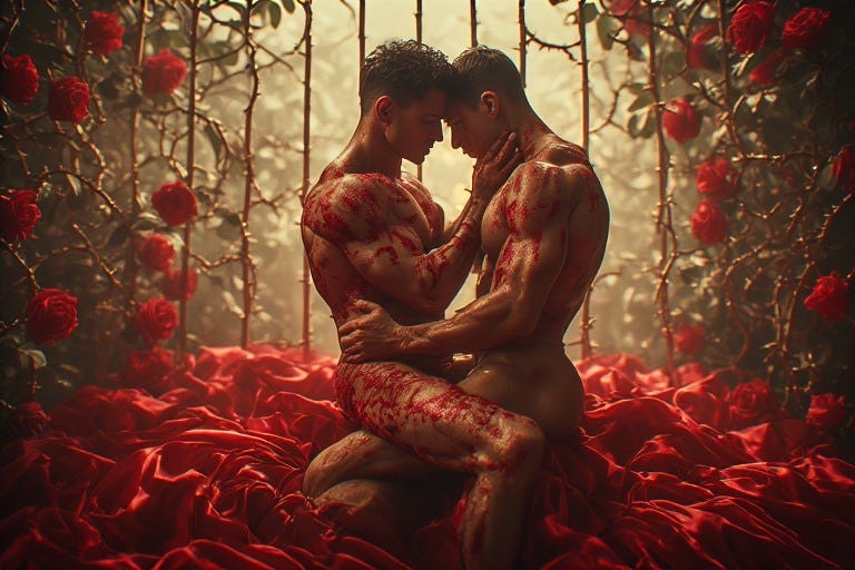 Witness the Queer Male in Rubedo as he joins with another in intimate communion. Fingertips trace constellations across skin with deliberate purpose. Lips whisper incantations against collar bones. Inhales and exhales become rhythmic invocations. Previously, he existed divided—one self participating while another hovered above, scrutinizing every move, every sound, every expression for acceptability. Now, he inhabits his entirety.